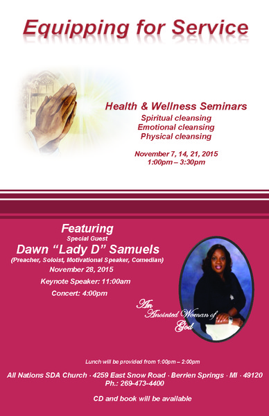 The first seminar will be held November 7, 2015 from 1:00-3:30PM at the All Nations Seventh-day Adventist Church.