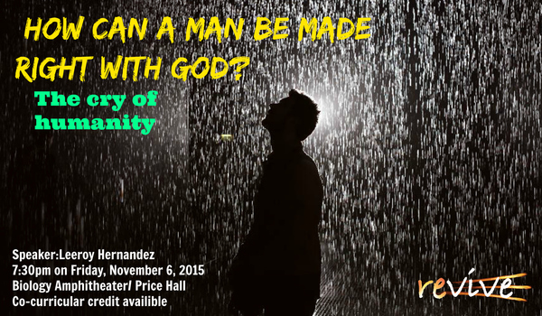 Throughout the course of histroy, man has constantly wondered. "how exactly can we be made right with God?" Come out and join us as we hear a word from brother Leeroy Hernandez. answering the question we have all anticipated. You will be tremendously blessed.