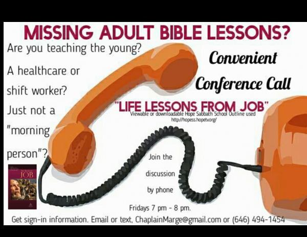 If you are consistently missing adult discussion of the Bible Study Lessons--for any reason--whether because you are ardently and sacrificially focused on caring for others whether as a Sabbath School teacher in the younger Divisions, as a healthcare worker or just because you are just not a "morning person", you are invited to join the discussion! You have watched Hope Sabbath School but might wish to have YOUR voice included in the interaction. The Hope Sabbath School Study Materials are used as a guide in our discussions as we ponder 2 main points: 1) What main points appealed to me? and 2) How will I personally apply these points?