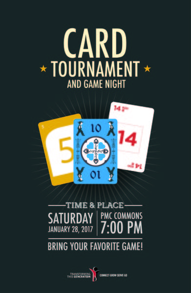 Join us in the PMC Commons for a Card Tournament and Game Night. Bring your favorite game!
