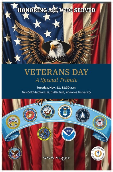 To help honor their service, we are planning to recognize our Andrews University veterans during one of the Tuesday choice options on Nov. 11, 2025, at 11:30 a.m. The program will be held in Newbold Auditorium, Buller Hall.
