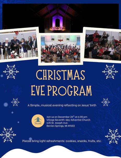 You’re invited to a beautiful Christmas Eve Concert at the Village Seventh-day Adventist Church! Join us as we reflect on the birth of Jesus and the incredible hope, peace and salvation His coming brings to our lives.