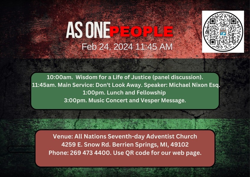 Join us as we celebrate Black History Month with the Benton Harbor Highland and Niles Michiana Ghanaian Seventh-day Adventist Churches this Saturday, Feb. 24. The theme for the day is "As One People," and we are honored to...