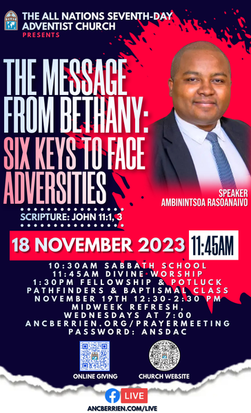 You are invited to join us this Sabbath, November 18. At 10:30 a.m., we have Adult and Children's Sabbath School classes where you can engage in riveting conversations with others. At 11:45 a.m., we have our worship experience...